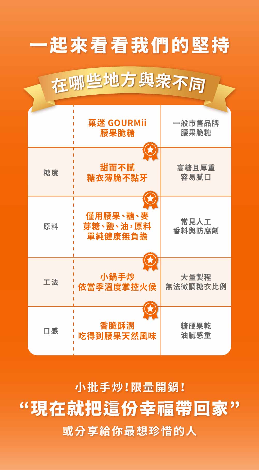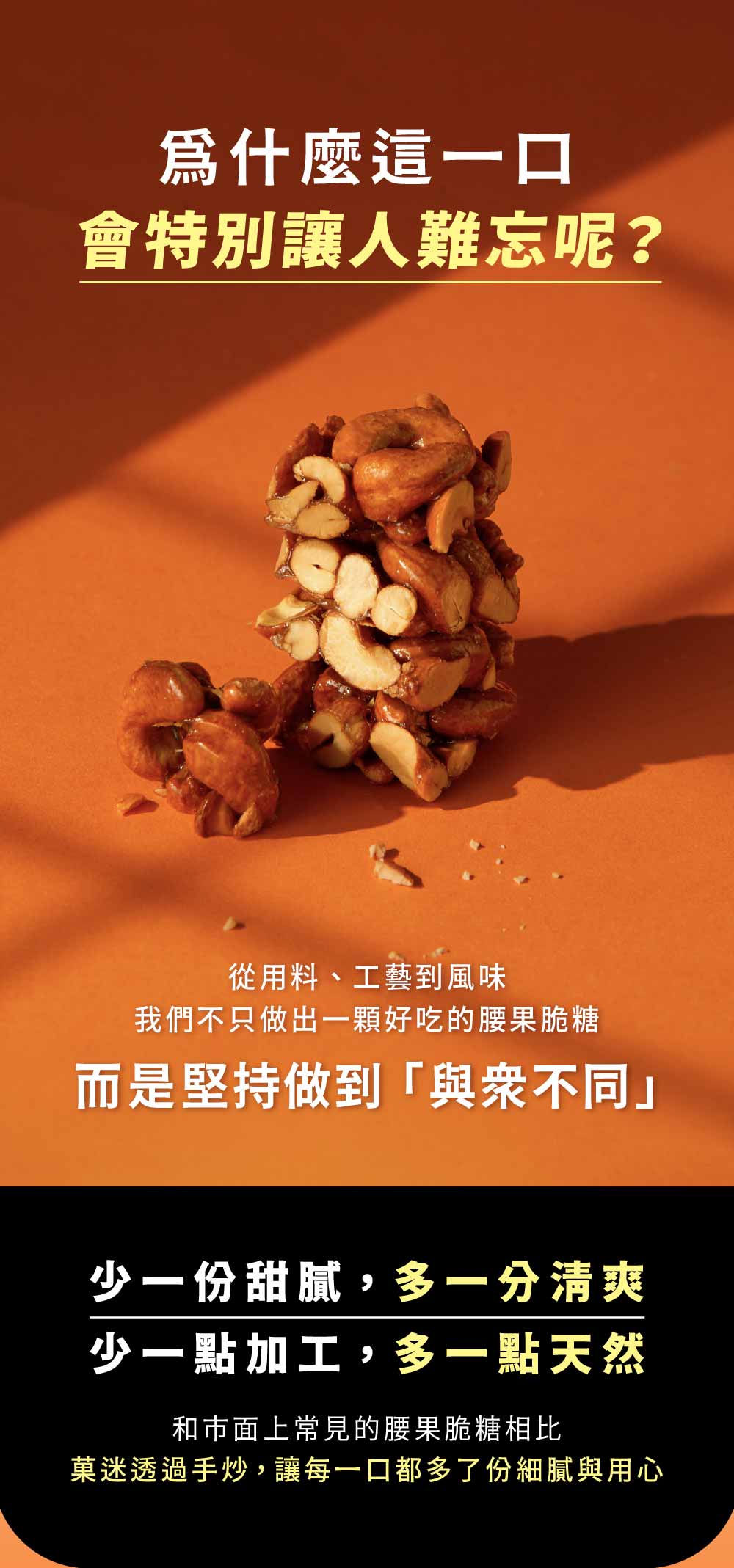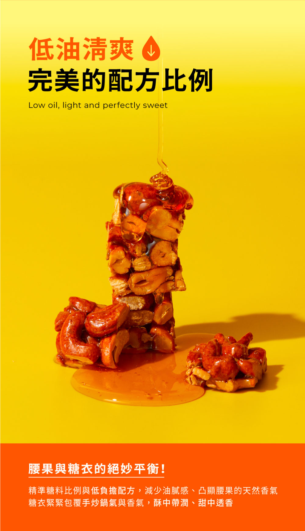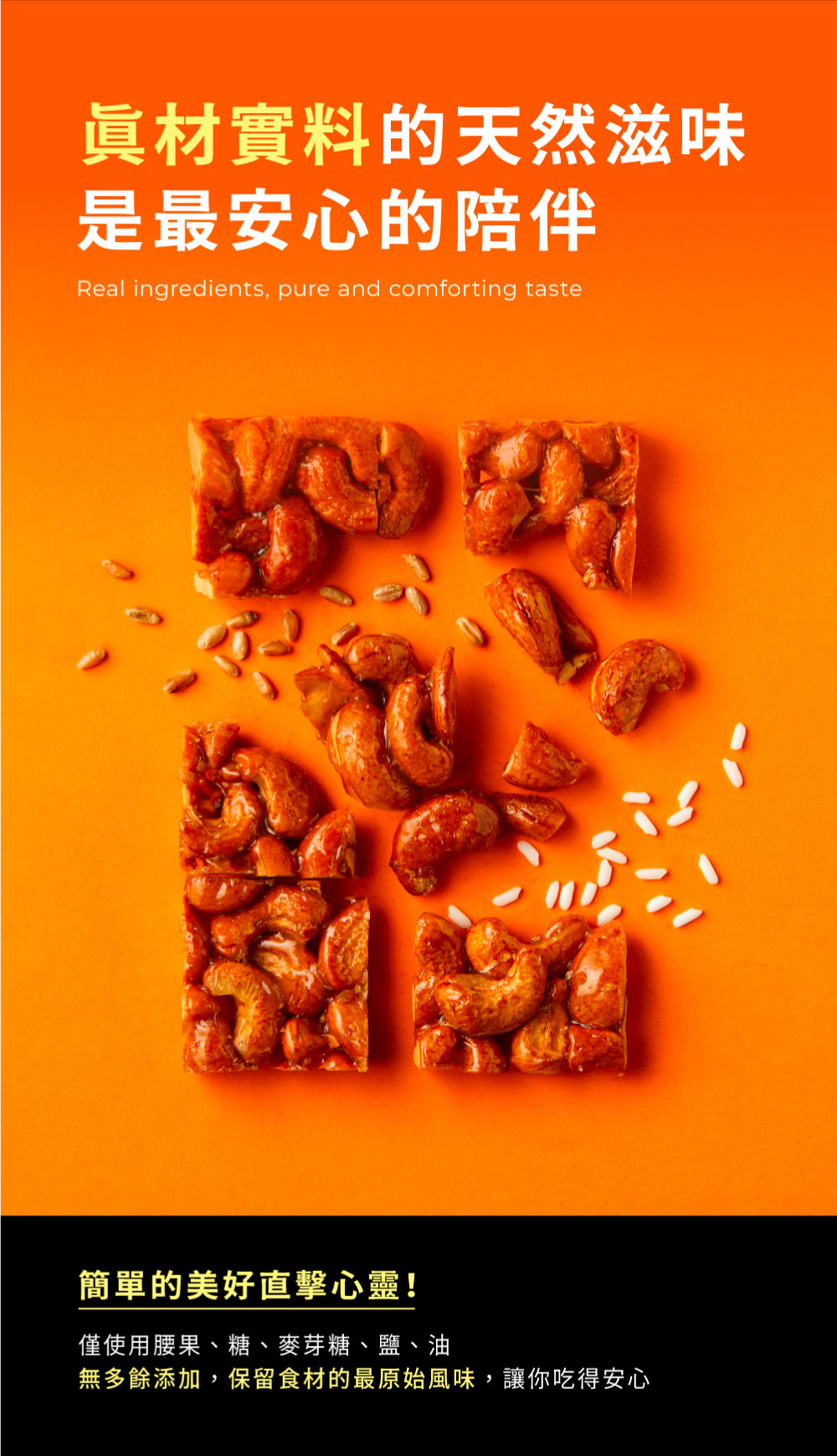 • 成份:腰果、糖、麥芽糖、鹽、食用油