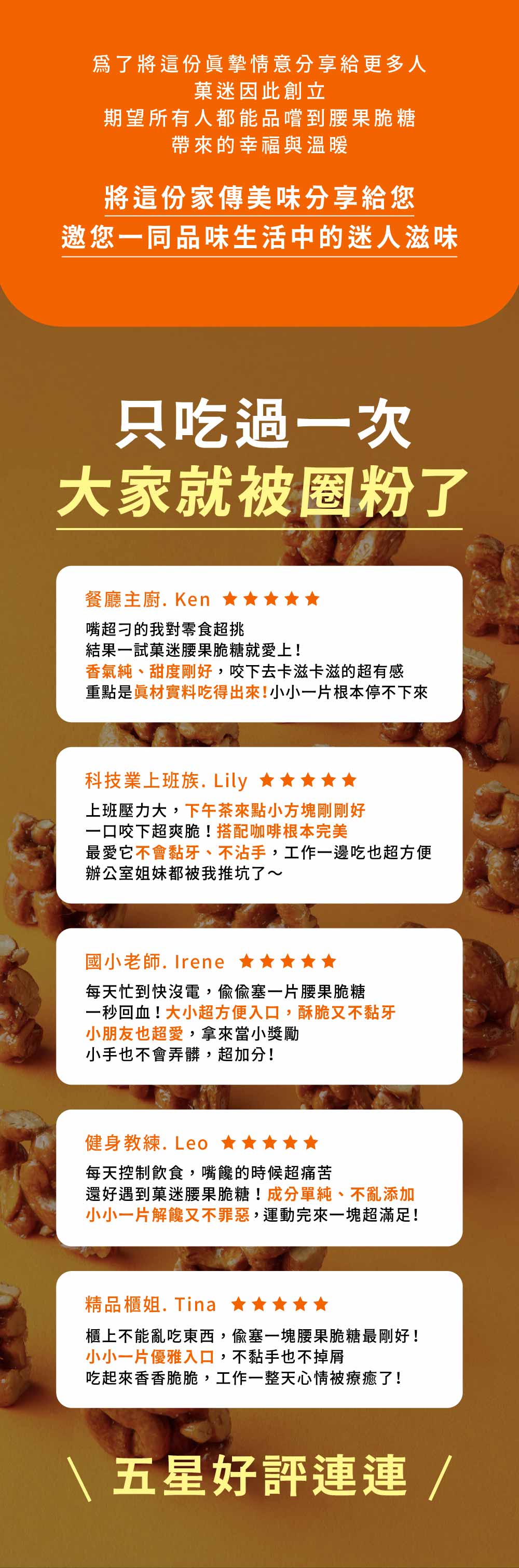 網站開幕慶期間由 菓迷方脆腰果/菓迷精選好物 全額負擔運費,全館免運費,讓您輕鬆購物、零負擔!
